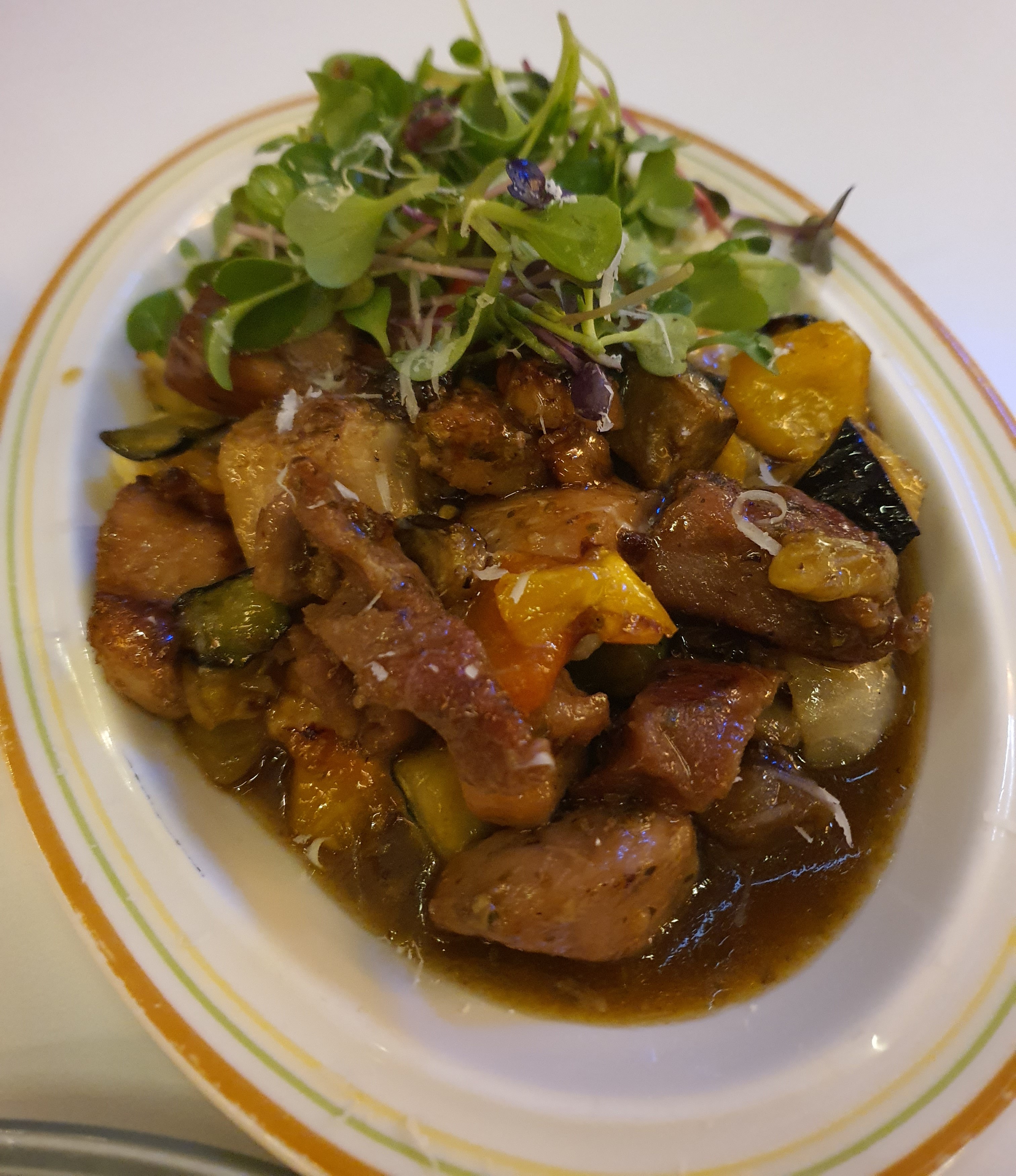 이제 네 번째 음식입니다. 고기 찜 같은 음식인데 분명 음식 안에 들어있는 재료들이나 구성은 서양식인데 맛이 동양식 같았습니다. 갈비찜과 아주 흡사한데 약간의 새콤함이 추가된 느낌이랄까. 그리고 달았습니다. 레드와인과 잘 어울릴 것 같습니다.