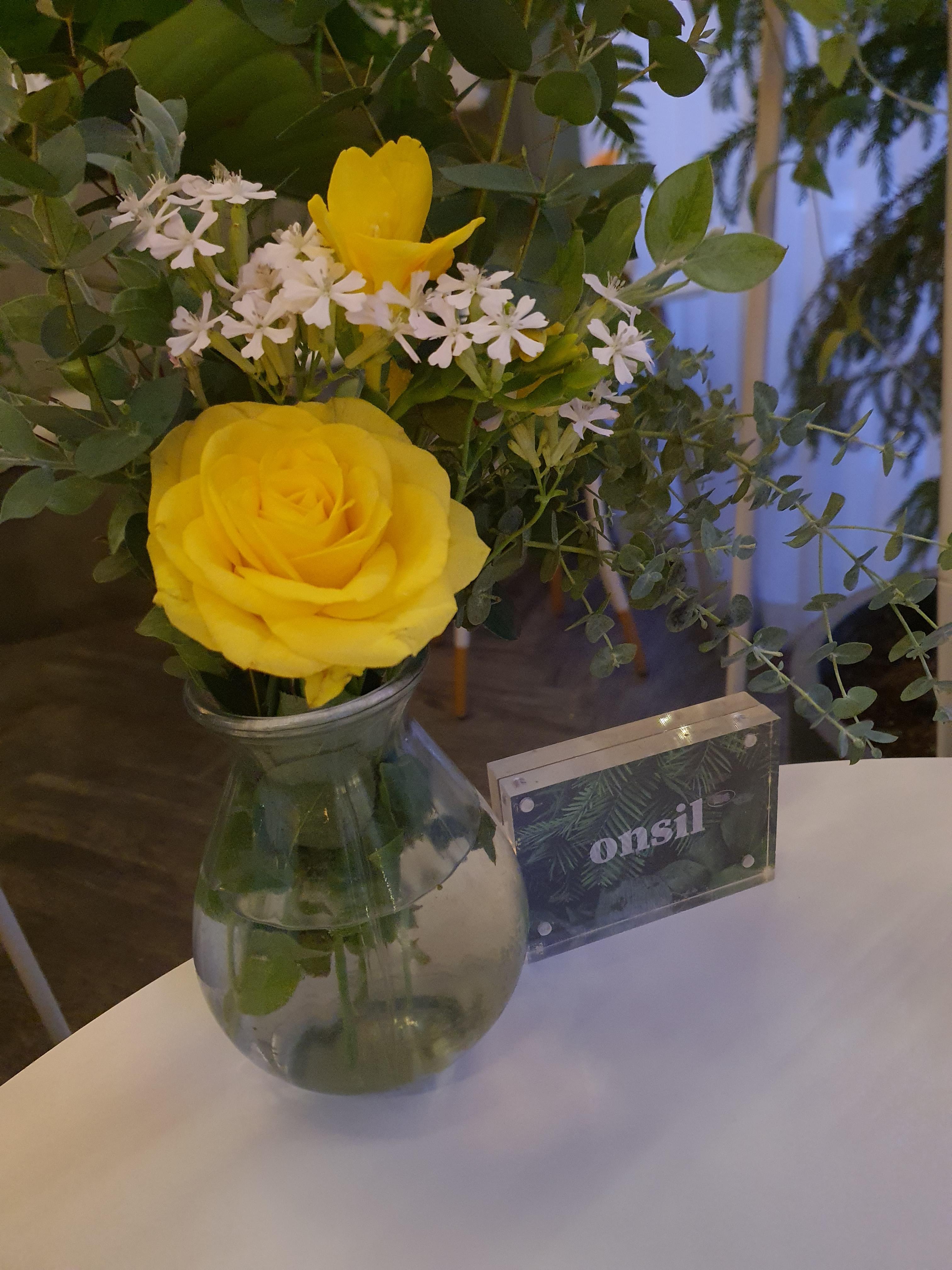 다른 손님들이 빠지고 아무도 없을 때 다른 테이블들과 가게 내부 인테리어를 좀 찍어봤습니다. 조도가 좋아서 사진이 이쁘게 잘 나오는 것 같습니다. 낮에 찍어도 테이블 사이사이에 조화들이 많아서 사진이 이쁘게 잘 나올 것 같습니다.